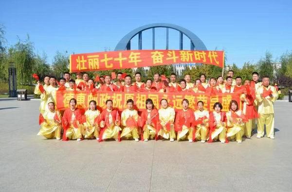 為喜迎新中國70周年華誕,9月21日上午,德惠市分公司組織部分職工前往當(dāng)?shù)毓珗@表演太極拳《我愛你,中國》。當(dāng)40位身穿黃色太極服的德惠郵政職工跟隨音樂翩翩起“武”時(shí),頓時(shí)吸引了廣大市民的目光,成為公園里一道亮麗的風(fēng)景線。