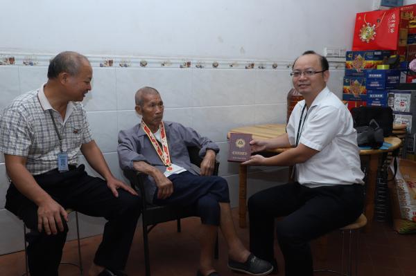 建國(guó)70周年際,中國(guó)郵政集團(tuán)公司貴港市分公司黨委委員、黨委組織部主任劉強(qiáng)和工會(huì)副主席李初岳代表公司黨委、工會(huì)上門走訪慰問中共中央、國(guó)務(wù)院、中央軍委頒發(fā)的“慶祝中華人民共和國(guó)成立70周年”紀(jì)念章獲得者抗美援朝老兵譚積友,送去黨和企業(yè)、工會(huì)的美好祝愿。
