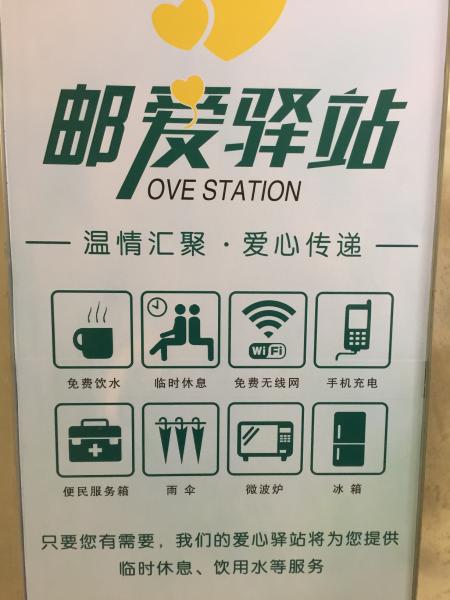今年5月下旬,根據(jù)江西省分公司和省郵政工會《關(guān)于做好江西郵政營業(yè)網(wǎng)點“愛心驛站”建設(shè)的通知》文件要求,上饒市分公司和市郵政工會在帶湖路城市網(wǎng)點建設(shè)了一個標(biāo)準(zhǔn)化的“郵愛驛站”示范點。
