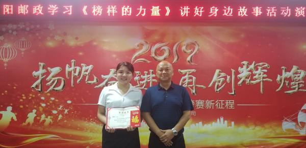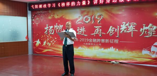 本次演講比賽采取10分制,分別設立了一等獎1名,二等獎2名,三等獎3名。當天晚上,比賽選手們在演講中激情滿懷,先后講述了江西郵政人在不同崗位所發(fā)生的點點滴滴感人的故事。參加本次演講比賽的選手,大部分來自生產一線,也有機關工作人員。有的講述個人學習《榜樣的力量》的切身感悟,在平凡的崗位做出不平凡的成績,也有的講學習《榜樣的力量》中先進模范集體的智慧和團隊的作為。選手們講述了一個個榜樣的故事,從不同側面表達了郵政人的執(zhí)著和無私奉獻的感人故事。經過2個多小時的激烈角逐,最后由金融業(yè)務中心的汪瀟如奪冠。演講活動在《我和我的祖國》優(yōu)美旋律中圓滿結束。