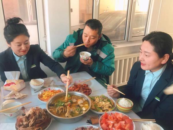 11月28日上午,集賢分公司工會主席田之勇攜相關(guān)工作人員,帶著為“小家”購買的床品、鍋具、以及新鮮果蔬,分別來到豐樂和升昌兩個支局,親手為職工們做愛心午餐。大家其樂融融,滿懷欣喜,一起慶?!靶录摇钡目⒐?。