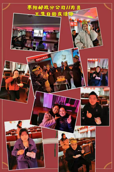 11月27日晚,棗陽郵政分公司為豐富員工業(yè)余生活,增強(qiáng)團(tuán)隊(duì)凝聚力,營造和諧團(tuán)隊(duì)的文化氛圍,由工會組織的首場以“和諧、感恩、友愛、進(jìn)步”為主題的團(tuán)建活動暨員工生日會在公司四樓會議室舉行。