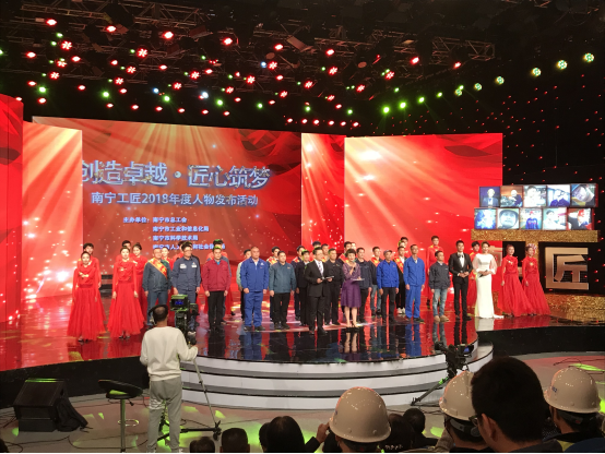 2019年12月25日晚8點(diǎn),在南寧市電視臺(tái)8號(hào)演播廳舉辦了“創(chuàng)造卓越?匠心筑夢(mèng)”——南寧工匠2018年度人物發(fā)布活動(dòng)。南寧市分公司組織了由勞動(dòng)模范、生產(chǎn)骨干組成的11人方陣參加了此次活動(dòng)?!皠?chuàng)造卓越?匠心筑夢(mèng)”2018年尋找“南寧工匠”活動(dòng)是由市總工會(huì)、市工信委、市科技局、市人社局等單位聯(lián)合舉辦,目的是深入學(xué)習(xí)貫徹習(xí)近平新時(shí)代中國特色社會(huì)主義思想和黨的十九大精神,大力弘揚(yáng)勞模精神、勞動(dòng)精神、工匠精神,進(jìn)一步加強(qiáng)產(chǎn)業(yè)工人隊(duì)伍建設(shè),深入開展南寧工匠推薦的宣傳學(xué)習(xí)活動(dòng),在全社會(huì)營造尊重勞動(dòng)、崇尚技能、鼓勵(lì)創(chuàng)造的社會(huì)風(fēng)尚。