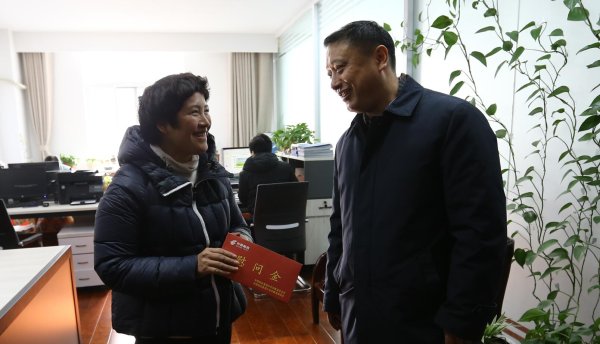 2019年1月14日,省分公司副總、省郵政工會主席楊志權(quán)和副主席孫偉一行來到淮北市分公司,帶著新春的美好祝愿,為困難職工、離退休老黨員、勞模帶來了省公司的關(guān)愛和新春的祝福。 慰問組慰問了患病的特困職工,為他們送去了慰問金,鼓勵他們要樹立信心、自強自立、努力克服困難,并衷心祝福他們度過一個歡樂祥和的新年。