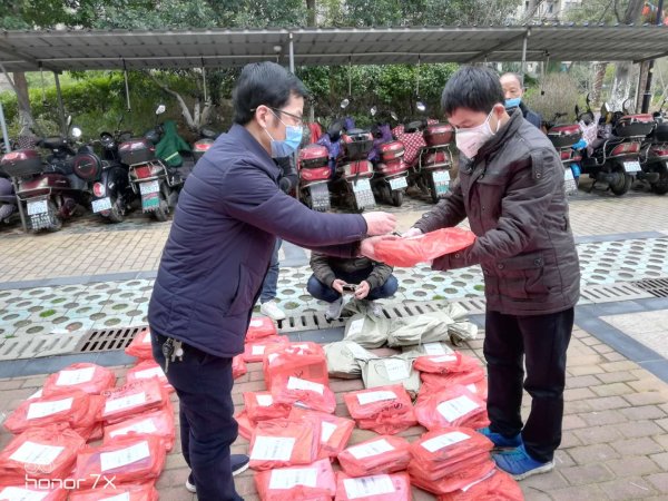 “喂,您好,請(qǐng)問您是xxx嗎?我是中國(guó)郵政,為您派送的教材到了。因現(xiàn)在屬于非常時(shí)期,請(qǐng)您到小區(qū)門口來領(lǐng)取,謝謝?!?nbsp;2月19日上午,撫州市公司黨委書記、總經(jīng)理、寄遞事業(yè)部總經(jīng)理張華總經(jīng)理帶隊(duì)來到薈萃中央小區(qū)幫扶投遞教材。剛到小區(qū)門口,他就迅速拿起手機(jī)聯(lián)系客戶。