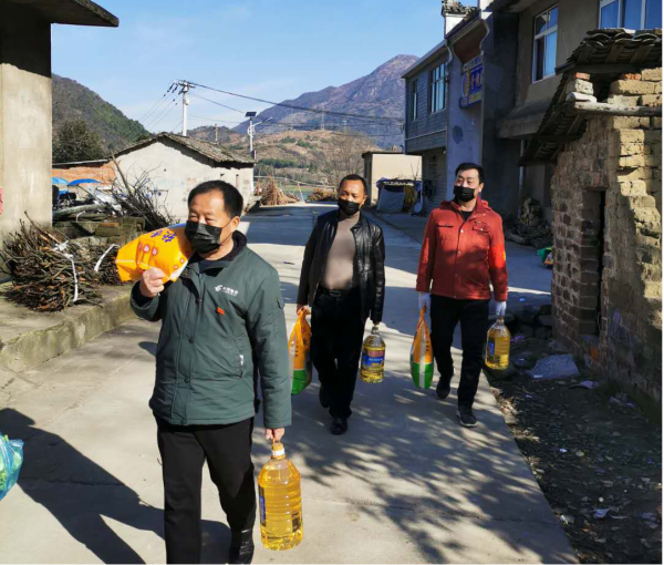 在石家晚村全面展開“四大”活動(dòng)以來,李亮同志提出郵政公司籌集部分生活物資對(duì)駐村貧困戶進(jìn)行入戶慰問。郵政公司駐石家晚村工作組一行4人進(jìn)村入戶,為駐村建檔立卡貧困戶送去米、油等基本生活物資,并詳細(xì)詢問每戶的生產(chǎn)生活情況、有何需求……,居住在海撥200米以上的有7戶17人,因受雨雪天氣影響,生活物資、防疫物資沒有及時(shí)送到群眾手中,2月18日晚,在村疫情防控例會(huì)上,李亮同志提出,“物資拿來了沒有送到貧困家庭人員的手中,是我們的失職,明天不管什么天氣,就是肩挑背扛也要將物資送到貧困群眾手中,作為駐村工作隊(duì),我們腳上沾有多少泥土,就證明我們心中沉積了多少對(duì)當(dāng)?shù)匕傩盏恼媲?。?月19日,駐村的建檔立卡貧困戶共計(jì)20戶50人全部收到了駐村工作組送達(dá)的生活物資和防疫物資。