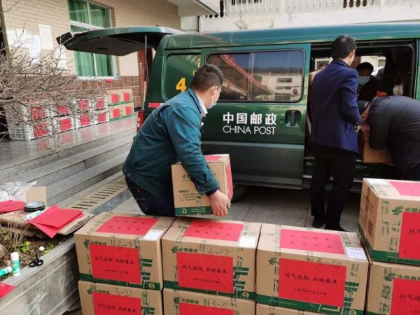7日晚上10點(diǎn)4分,愛心快遞抵達(dá)武漢。此時(shí),已提前對(duì)接好的武漢轉(zhuǎn)運(yùn)中心的工作人員們?cè)缫训群蛟趫?chǎng),郵車一到,迅速對(duì)36箱愛心快遞進(jìn)行處理,并于深夜“加急”派送。郵政全網(wǎng)合作、接力投遞,越過兩道中轉(zhuǎn)流程,經(jīng)過15個(gè)小時(shí)的跋涉,跨越近700公里的距離,店子鎮(zhèn)政府的愛心快遞終于在凌晨1點(diǎn)20分送達(dá)武漢東湖新技術(shù)開發(fā)區(qū)管理委員會(huì)。