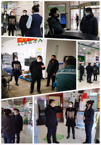日前,通化市分公司總經(jīng)理楊軍輝帶領(lǐng)相關(guān)人員,深入到新華營業(yè)所、和平路東營業(yè)所、東強營業(yè)所、新華郵政、二道江投遞部,看望慰問一線職工,關(guān)切詢問員工防護用具佩戴情況、測溫消毒情況,對新型冠狀病毒感染的肺炎疫情防控工作進行現(xiàn)場再檢查、再布置、再防范,對疫情防控與復(fù)工復(fù)產(chǎn)工作提出要求和意見。(吉林郵政工會)