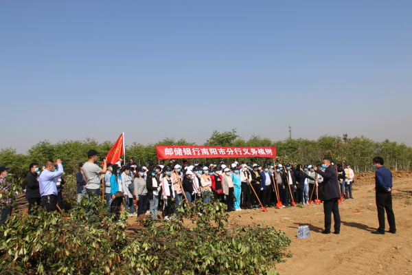 為進一步提高全體職工生態(tài)環(huán)保建設(shè)意識,營造保護地球、愛護環(huán)境的環(huán)保理念,郵儲銀行南陽市分行于近日在南陽市生態(tài)環(huán)保靜脈園區(qū)開展了“手植一棵樹 綠化一片天”義務(wù)植樹活動。此次義務(wù)植樹活動得到了南陽市城管局的高度重視和大力支持,該局為植樹活動提供了植樹基地、樹苗、灌溉澆水車和綠豆水等后勤保障工作。