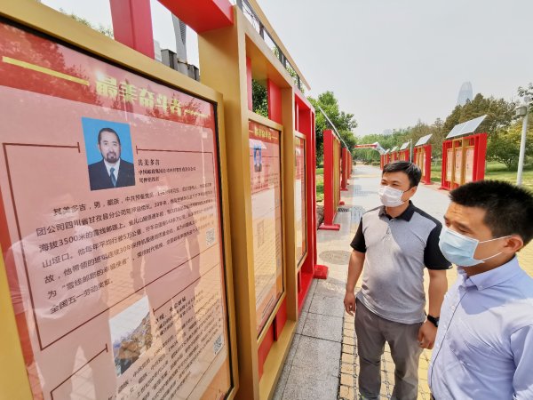 2020年5月6日,山東濟(jì)南,在泉城廣場“最美奮斗者”系列展示長廊,市民觀看“最美奮斗者” 其美多吉事跡介紹。據(jù)了解,該長廊由濟(jì)南市精神文明辦、濟(jì)南泉城廣場管理處聯(lián)合主辦,自五一開展,常年展覽。長廊共展示新中國成立以來全國各個時期各行各業(yè)的優(yōu)秀工作者(集體)300個,其中個人278名,集體22個。其中,中國郵政員工其美多吉、王順友在列。這些“最美奮斗者”奮斗在祖國的各個行業(yè),兢兢業(yè)業(yè),立足平凡崗位,為國家富強(qiáng)、民族振興、社會和諧、人民幸福貢獻(xiàn)著自己的力量。