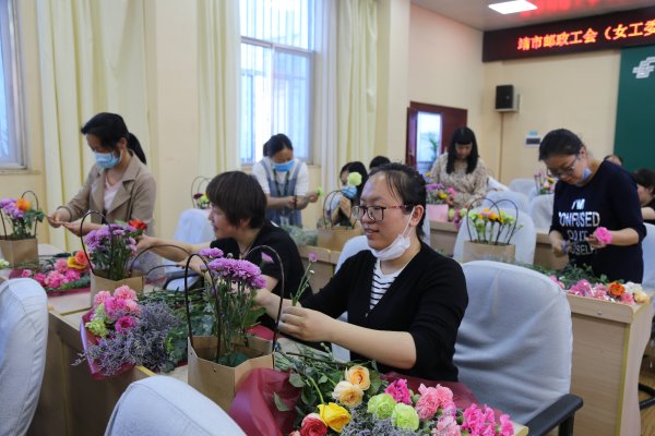 工會為員工們精心準(zhǔn)備了花泥、玫瑰花、康乃馨、情人草、向日葵等插花原材料?;ㄋ?yán)蠋煄ьI(lǐng)大家先認(rèn)識各種花卉,并介紹了插花的基本知識、造型、器具、色彩應(yīng)用及花的品種,指導(dǎo)大家如何插插花。在實(shí)際操作過程中,大家一邊聽著老師講解,一邊拿著鮮花跟著老師修剪花枝,一邊看著眼前的花進(jìn)行對比,琢磨著如何下手。在老師的指導(dǎo)下,每個(gè)人都充分發(fā)揮自己的想象力,一步一步創(chuàng)作出各具特色的插花作品。經(jīng)過一個(gè)多小時(shí)的創(chuàng)作,一籃籃美麗的鮮花“新鮮出爐”。