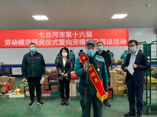 七臺河市郵政工會開展七臺河市第十六屆勞動模范頒獎儀式暨向勞模學習倡議活動