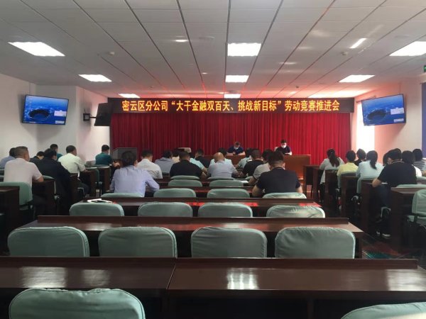 5月26日下午,北京有著密云區(qū)分公司召開“大干金融雙百天,挑戰(zhàn)新目標(biāo)”勞動(dòng)競賽推進(jìn)會(huì)。在上周召開部室、支行負(fù)責(zé)人啟動(dòng)會(huì)的基礎(chǔ)上,召開了機(jī)關(guān)全體員工和部分投遞員、營業(yè)員參加的競賽推進(jìn)會(huì)。