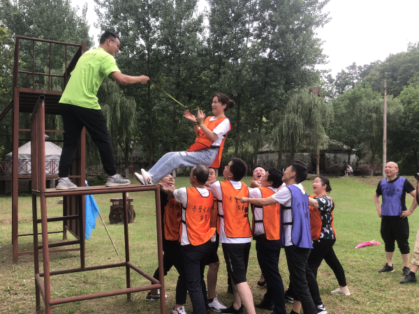 此次拓展活動(dòng)共分為三個(gè)部分,第一個(gè)部分主題是“活力全開”,通過(guò)兩個(gè)趣味小游戲:?jiǎn)问纸拥V泉水和默契喊口號(hào),讓大家迅速進(jìn)入狀態(tài),三個(gè)隊(duì)伍游戲pk,爭(zhēng)分奪秒,“火藥味”十足,盡管閃電隊(duì)取得最后一名,但他們依然斗志昂揚(yáng)。第二個(gè)部分是“團(tuán)結(jié)協(xié)作”,通過(guò)“鼓動(dòng)人心”、“凌波微步”兩個(gè)難度稍高的活動(dòng)考驗(yàn)隊(duì)員之間的溝通與協(xié)作能力,尤其是鼓動(dòng)人心,讓人意識(shí)到,團(tuán)隊(duì)成功是個(gè)人成功的基礎(chǔ),個(gè)人成功必須建立在團(tuán)隊(duì)其他成員的共同努力和支持的基礎(chǔ)之上。隨著大家不斷練習(xí),逐漸有了默契,三個(gè)隊(duì)伍均取得了20分以上的好成績(jī)。第三個(gè)部分是“挑戰(zhàn)自我”。這個(gè)部分則是考驗(yàn)個(gè)人勇氣與團(tuán)隊(duì)信任,通過(guò)“穿越電網(wǎng)”、“信任背摔”兩個(gè)游戲,戰(zhàn)勝自我,相信身邊的隊(duì)友,每個(gè)人都勇敢的爬上高臺(tái),將后背交給下方的隊(duì)友,相互鼓勵(lì),戰(zhàn)勝恐懼,“讓我來(lái)、我能行、相信你們……”。