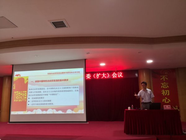 海南大學(xué)教授夏鋒題為《加快海南自由貿(mào)易港政策和制度系統(tǒng)集成創(chuàng)新》的授課,講述了海南自由貿(mào)易港建設(shè)的戰(zhàn)略意義、相關(guān)政策和制度的制定過程及目標(biāo)等。