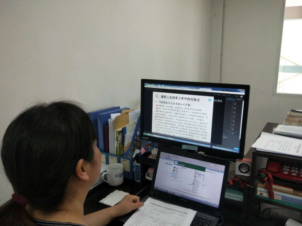 培訓(xùn)班通過“騰訊課堂”平臺,以網(wǎng)上培訓(xùn)模式進行。課程涵蓋2020年全國“兩會”精神解讀、《中國工會章程》解讀、工會常用法律法規(guī)政策解讀等。培訓(xùn)課中,老師通過豐富的案例和淺顯易懂的表達,向大家講授規(guī)范基層工會組織建設(shè)、工會財務(wù)管理等內(nèi)容,解析工會財務(wù)工作中的風(fēng)險點及常用法律法規(guī)知識。