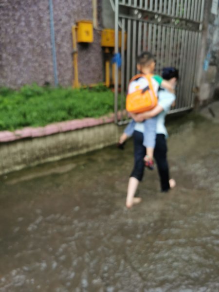 6月30日11時許,重慶市大足區(qū)突降暴雨,大足區(qū)分公司郵亭郵政所位于低洼地帶,所主任王維見大雨來襲擔心網(wǎng)點受災(zāi),她趕緊前往位于網(wǎng)點最低處的庫房查看是否有雨水漫灌情況。所幸,庫房并未受災(zāi),但位于郵政所背后的郵亭幼兒園卻受災(zāi)較為嚴重。積水已經(jīng)將操場淹沒,達成年人小腿處,積水最深處已達成年人膝蓋處,60余名小朋友被困在教室中,老師們慌忙地將小朋友從教室向外轉(zhuǎn)移。