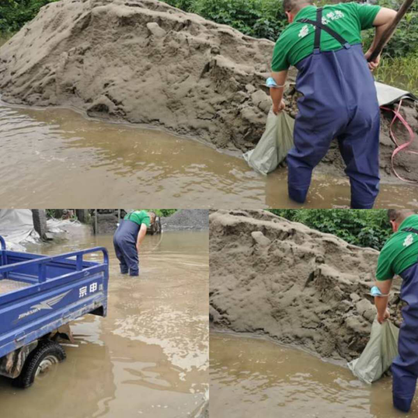 岑河支局在購買不到沙袋的情況下,自己動(dòng)手、豐衣足食。支局經(jīng)理龔偉聯(lián)系到一家沙廠,岑河支局防汛突擊隊(duì)連忙來到沙廠,帶上鐵揪,將采購的一批蛇皮袋全部裝滿沙子,這批沙袋順利運(yùn)回支局備用。
