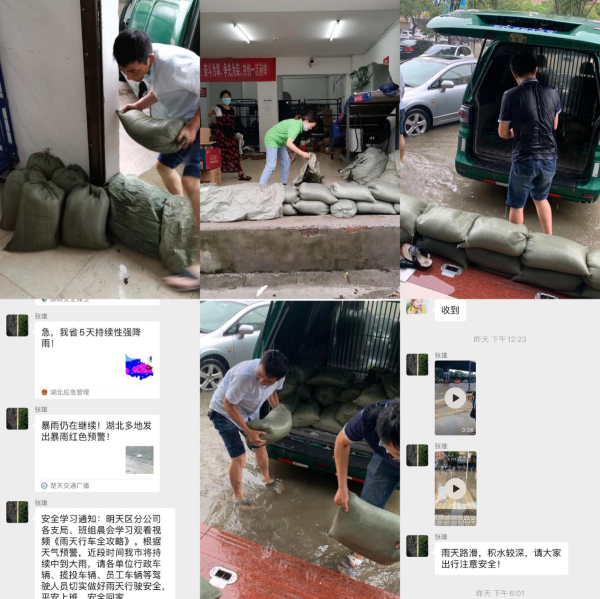 區(qū)分公司防訊辦在安全工作微信群、QQ群持續(xù)播報(bào)漬水路況、天氣預(yù)警、暴雨提示信息,提醒員工時(shí)刻關(guān)注雨情,提前做好防范;加強(qiáng)對地勢低洼營業(yè)網(wǎng)點(diǎn)、投遞站等場地、房屋滯水情況的排查,及時(shí)堆碼沙袋。