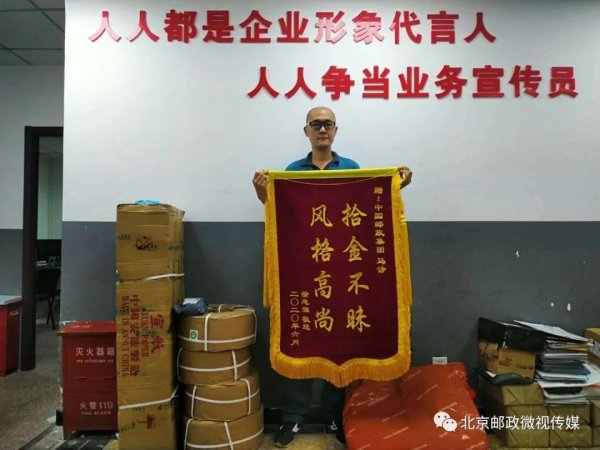 7月16日下午5點左右,用戶徐先生來到西城區(qū)西單郵政支局金融街營業(yè)部,將一面寫有“拾金不昧 風(fēng)格高尚”的錦旗送給快遞員馬諍,并給營業(yè)部經(jīng)理一封感謝信。