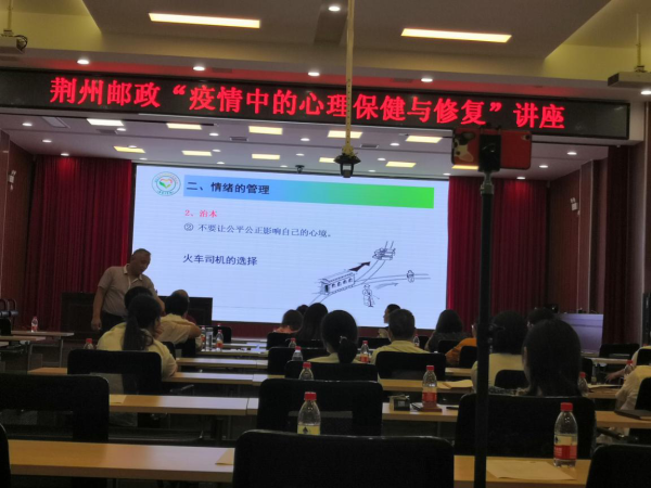 為關(guān)心關(guān)愛員工身心健康,強(qiáng)化員工疫后心理健康服務(wù)工作,增強(qiáng)員工在復(fù)工復(fù)產(chǎn)中的心理防御能力,7月29日下午荊州郵政工會(huì)組織開展文化大講堂--“疫情中的心理保健與修復(fù)”講座課程。來自市公司本部和沙市區(qū)、荊州區(qū)分公司共有60名員工參加了講座。