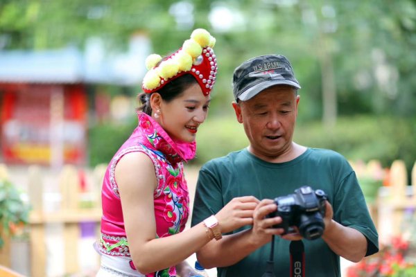 進入彝人古鎮(zhèn)的彝人部落,受疫情影響,外地游客還不多。剛好為我們提供了較好的取景選擇。好美呀!一聲驚嘆把我們的眼光從選景解難度上拉了回來。細細一看,我們邀請的美女模特已換好彝族盛裝,婀娜多姿的站在我們面前。模特俏麗的面容在彝族盛裝的映襯下,顯得格外的美麗動人,路人紛紛駐足一睹芳顏。為節(jié)約時間,我們趕緊拉上模特,開始又一輪的拍攝?!罢埬樲D向天空一點”、“眼神往下看一點”、“笑臉燦爛一點”,雖然我們要求很多,但模特不厭其煩的滿足著我們的要求,拍到自己滿意的,還不忘在同事面前炫耀一下,或者沉靜在自我陶醉中。