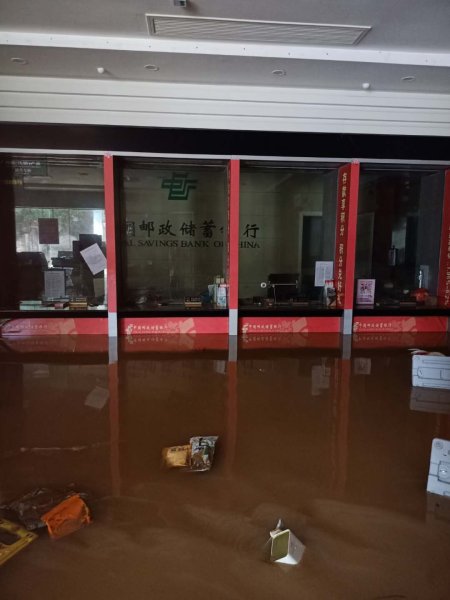 “希望洪水快點(diǎn)退去”,楊秀云站在二樓看著來(lái)勢(shì)兇猛的洪水,心里反復(fù)默念著。誰(shuí)都能看出她的憂慮,因?yàn)榻阱氤叩募抑羞€有她兩個(gè)未成年的孩子,而且家中進(jìn)水也淹至2米深了。她沒(méi)有選擇回家看一眼,而是堅(jiān)守在網(wǎng)點(diǎn),與網(wǎng)點(diǎn)員工共進(jìn)退。