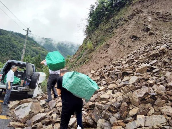 7月9日上午9點(diǎn),竹溪分公司防汛救災(zāi)領(lǐng)導(dǎo)小組接到天寶支局上報“兵營至向壩經(jīng)過天寶段因強(qiáng)降雨導(dǎo)致多處道路垮塌,干線郵路中斷,郵件滯留在垮塌道路中間,郵運(yùn)車輛無法前進(jìn),后退也無助”的情況后,緊急調(diào)動竹溪分公司機(jī)關(guān)干部胡輝鵬等11名防汛抗災(zāi)突擊隊(duì)成員奔赴現(xiàn)場,迅速投入防汛抗災(zāi)搶險工作。