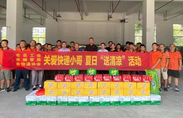 7月28日,上饒市郵政管理局聯(lián)合市總工會(huì)、市快遞行業(yè)協(xié)會(huì)到上饒郵政攬投部站,開展“關(guān)愛快遞小哥 夏日‘送清涼'慰問活動(dòng)”,發(fā)放冰紅茶、礦泉水、雪碧等解暑飲品。