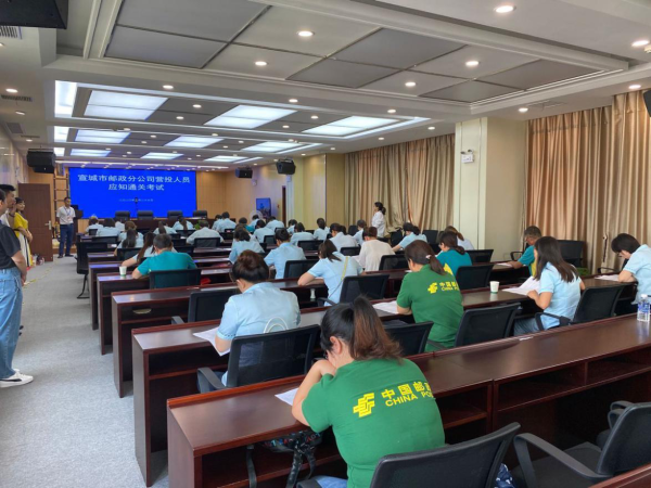 2020年7月26日,宣城市分公司組織全市營投人員在全市七個考區(qū)同時舉行普服應知應會通關考試。市郵政管理局領導和市分公司分管副總在主考區(qū)巡考,并通過會議視頻系統(tǒng)對六個分考區(qū)進行巡考。市郵管局行管科負責人、市公司服務質(zhì)量部負責人赴涇縣分考區(qū)進行了現(xiàn)場巡考。