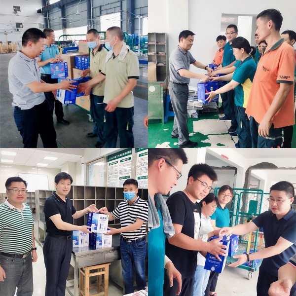 近日,馬鞍山天氣持續(xù)高溫,為保障員工身心健康和生產安全運行, 8月6日—8月11日市分公司領導兵分四路冒著酷暑先后來到開發(fā)區(qū)郵件處理中心和市區(qū)四大攬投部為奮戰(zhàn)在工作一線的投遞員和日夜奮戰(zhàn)在轉運員工送去清涼。公司領導所到之處詳細詢問他們出班時間和路線,對他們高溫酷暑期間依然堅守崗位的敬業(yè)精神表示慰問和感謝,叮囑他們在高溫投遞過程中注意安全,做好自身防護措施,謹防中暑,平安度夏。公司領導將一箱箱飲品發(fā)放到他們的手中,為他們送去了一份夏日的清涼。