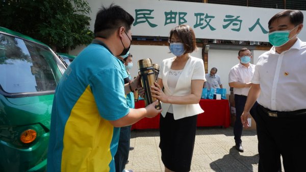 驕陽似火,烈日當(dāng)空,近日北京郵政工會(huì)王艷主席來到了朝陽郵政水碓子投遞部,為一線投遞員發(fā)放大容量保溫壺、夏季養(yǎng)生谷物。此次市分公司工會(huì)送來的保溫壺可謂是郵政人的專屬壺,每一個(gè)保溫暖壺身上都印有中國(guó)郵政字樣及標(biāo)志,讓每一名投遞員都深深感受到了自我歸屬感與幸福感,豐富的夏季養(yǎng)生解暑谷物更是貼心到家。慰問中,王艷主席細(xì)致地了解了投遞員最近的工作情況,對(duì)在疫情間、烈日下始終堅(jiān)守崗位的所有一線職工表達(dá)了真摯的感謝,并親切叮囑大家一定要注意防暑補(bǔ)水、遵守各項(xiàng)安全生產(chǎn)規(guī)定,確保勞動(dòng)安全和身體健康。職工們紛紛感謝市分公司領(lǐng)導(dǎo)、工會(huì)部門一系列的“送清涼、送健康、送關(guān)懷”慰問活動(dòng)。炎熱天氣還將持續(xù)一段時(shí)間,朝陽郵政的每一位投遞員勢(shì)必將繼續(xù)發(fā)揮吃苦耐勞的精神,用頑強(qiáng)的意志和戰(zhàn)斗力踐行“人民郵政為人民”的宗旨,一如既往的送好每一件包裹、服務(wù)好每一位客戶,全力打造行業(yè)“國(guó)家隊(duì)“。(北京郵政工會(huì))