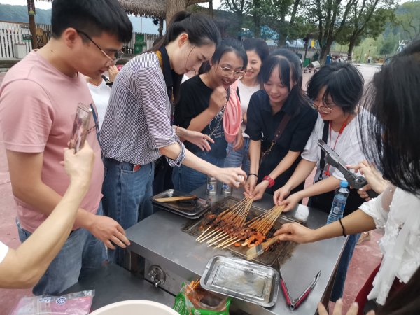 在鳳凰灣森林樂(lè)園,大家被美景吸引,三倆成群,四處游玩,放松心情,靜待一場(chǎng)愉快的燒烤活動(dòng)。不一會(huì)兒,活動(dòng)現(xiàn)場(chǎng)香味彌漫,烤肉讓人垂涎欲滴。各種串串一旦烤熟,馬上就被圍在烤攤邊上的員工一搶而空。為了趕上大家吃的速度,“燒烤大師們”一個(gè)個(gè)都卯足了勁。