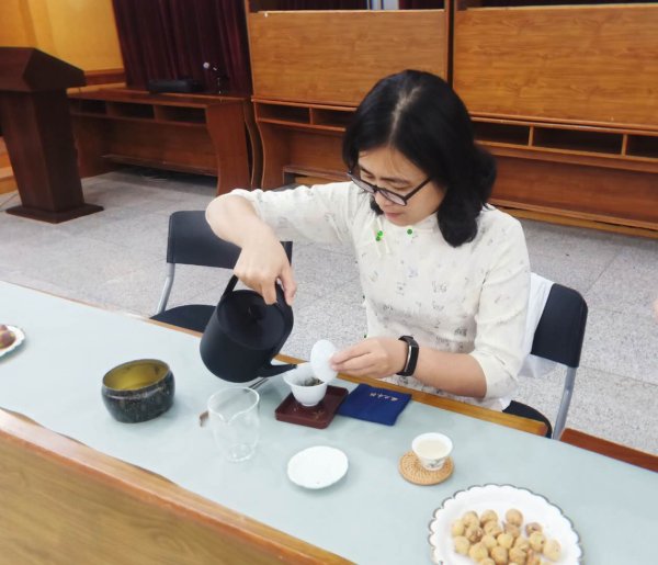本次活動(dòng)邀請(qǐng)了國(guó)家一級(jí)茶藝技師、國(guó)家二級(jí)評(píng)茶技師、國(guó)家二級(jí)人力資源管理師朱萍老師講解了茶藝知識(shí)。大家跟著老師從聽、看、聞(品)、泡四個(gè)步驟,一起習(xí)茶史、明茶性、知茶禮,感知茶與水、茶與器、茶與人的美好關(guān)系。整場(chǎng)活動(dòng)我們借助自然又內(nèi)斂的白茶,感受了茶湯的色、香、味、形、韻,了解了茶席的次第鋪設(shè)、體會(huì)了侍茶的從容寧?kù)o、品鑒了茶湯的美妙。