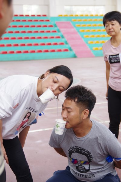 整個(gè)活動(dòng)共有12個(gè)游戲節(jié)目:螃蟹接力賽跑、托乒乓球賽跑、袋鼠跳接力賽、摸石頭過(guò)河接力賽、定點(diǎn)投籃比賽、三人四足、杯水傳情、撲面而來(lái)、氣球吹杯、蒙眼彈瓶蓋、吃瓜比賽、企鵝漫步。一個(gè)個(gè)有趣的節(jié)目讓人笑得前仰后合,活動(dòng)中團(tuán)隊(duì)之間相互配合、永爭(zhēng)第一的競(jìng)技精神讓人心潮澎湃,吶喊聲、笑語(yǔ)聲不時(shí)在場(chǎng)內(nèi)響起。