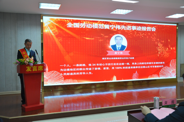 為弘揚勞模精神、勞動精神、工匠精神,號召全體干部職工不忘初心、牢記使命,以榜樣的力量凝聚郵政企業(yè)發(fā)展的強大正能量。11月26日,崇左郵政公司在二樓多功能會議室召開全國勞動模范黃寧偉先進事跡報告會。市分公司領(lǐng)導(dǎo)班子、市分公司本部全體員工約計70人現(xiàn)場聆聽報告。市分公司副總經(jīng)理、工會主席黃霞主持報告會。