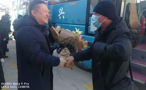 11月26日呼瑪縣郵政分公司北疆支局鄉(xiāng)郵員韓幫緒赴京參加全國(guó)勞模表彰大會(huì)載譽(yù)歸來(lái),大興安嶺地區(qū)郵政分公司黃俊光副總經(jīng)理代表地區(qū)分公司黨委、工會(huì)在客運(yùn)站迎接勞模韓幫緒,并送上鮮花和慰問(wèn)品表示最熱烈的祝賀。