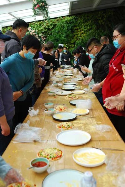 12月2日,為關心關愛在旺季生產(chǎn)期間各崗位上做出突出貢獻的職工,西城區(qū)分公司工會帶領120名職工在798藝術園區(qū)進行了手工披薩的制作。此次活動邀請了經(jīng)驗豐富的高級面點師進行講解及手工制作培訓,首先講了披薩的起源地及在中國發(fā)展歷程,隨后教大家如何將準備好的食材一一陳列,面、菜、果醬、奶酪一應俱全,并教授如何將烤箱預熱、調(diào)整烘烤的參數(shù)。
