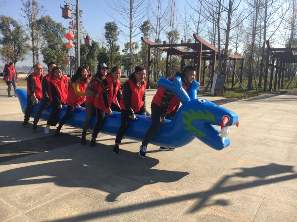 早上9:00,由主持人召集員工集合,集體做熱身運動,避免在比賽中受傷。9:30活動正式開始,首先是拔河比賽,3個團隊分別選出10名優(yōu)秀隊員參賽,以循環(huán)賽的方式進行比賽,決出冠亞軍。其次是旱地龍舟比賽,每場比賽2個團隊,每隊8人,隊員跨在旱龍背上向前跑步,在規(guī)定的路線內(nèi),到達目的地時間較短的2個團隊獲勝,每個團隊可參加3次,選最好成績進行評獎。最后是無敵風火輪比賽,每隊10人,男女各5人,隊員全部站到履帶里面,腳踩履帶,在規(guī)定的跑道上行走30米,用時最少前2隊獲勝?;顒蝇F(xiàn)場,員工們通力協(xié)作,歡呼聲連成一片,賽出了“友誼第一,比賽第二”的精神。