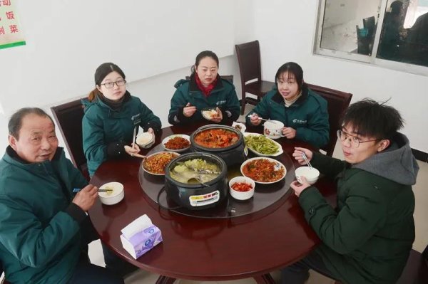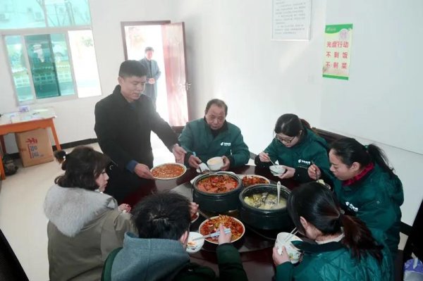 看到大家拼命工作的狀態(tài),作為支局經(jīng)理,項(xiàng)順成認(rèn)為必須為員工做點(diǎn)什么。在項(xiàng)順成的提議下,福田支局旺季生產(chǎn)期間每月給小食堂增加500元補(bǔ)貼,讓辛苦了一天的員工晚上能“加雞腿”。在湖北,一進(jìn)臘月,臘魚臘肉就是家家戶戶餐桌上必不可少的一道菜,支局小食堂也為員工安排上了。熱氣騰騰的黃顙魚火鍋、鴨子燒胡蘿卜,湖區(qū)特色的鲊?yán)苯泛◆~,還有蒸臘魚、時(shí)令蔬菜、雞蛋湯……小食堂的豐盛午餐,讓員工們有了家的感覺。