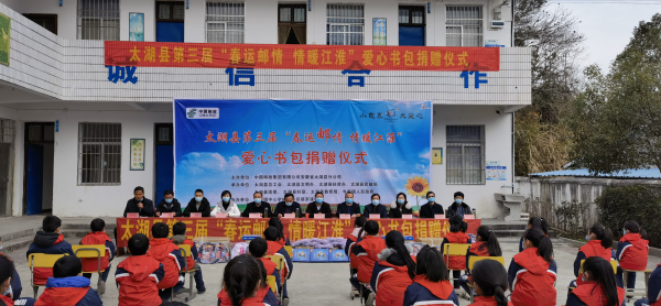 1月20日,太湖縣分公司聯(lián)合太湖縣總工會、文明辦等單位在太湖寺前鎮(zhèn)羅溪小學開展了第三屆“春運郵情 情暖江淮”愛心捐贈活動,為100余名貧困學生送去了愛心書包。