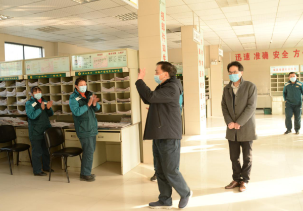 最后,吳建華一行來到了剛剛獲得“全國郵政行業(yè)先進集體”榮譽的曾都區(qū)普郵投遞部,他同投遞員親切地握手,向他們?nèi)〉玫臉s譽表示祝賀,并為他們送上新春祝福。