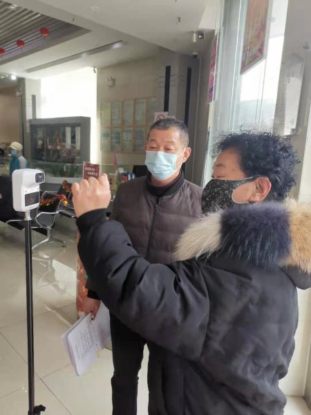 (基層網(wǎng)點(diǎn)正安裝使用測溫設(shè)備)