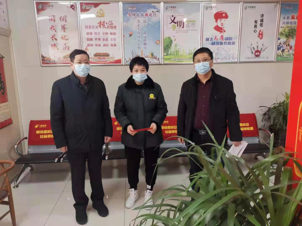 為使困難和特困職工過(guò)上一個(gè)愉快祥和的春節(jié), 2月1日,亳州市郵政分公司黨委班子成員帶著省、市公司公司黨委的關(guān)懷,深入基層一線,看望慰問(wèn)勞模先進(jìn)和困難職工,將新春的問(wèn)候和分公司黨組的關(guān)懷與祝福送到生產(chǎn)一線,送到困難職工的心坎上。 每到一處,慰問(wèn)組一行與困難職工親切交談,噓寒問(wèn)暖,詳細(xì)了解網(wǎng)點(diǎn)人員配置情況、業(yè)務(wù)發(fā)展情況和客戶走訪情況。指導(dǎo)她們利用春節(jié)營(yíng)銷契機(jī),以微信、短信的方式,發(fā)展業(yè)務(wù),讓大客戶感受到郵政為她們帶來(lái)的溫馨祝福。鼓勵(lì)網(wǎng)點(diǎn)人員克服困難,在做好業(yè)務(wù)發(fā)展的同時(shí),過(guò)上一個(gè)愉快祥和的春節(jié)。