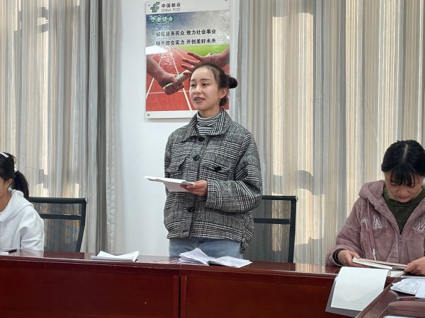 師亞雄總經(jīng)理對即將到崗見習的新同事表示祝賀和歡迎,對郵政行業(yè)進行了介紹,從新入職人員必備的學習本領、知行合一、志存高遠、團隊精神四個方面與各位學員進行了交流。要求4名見習生要認真完成見習任務,早日通過考核,成為一名優(yōu)秀的郵政員工。