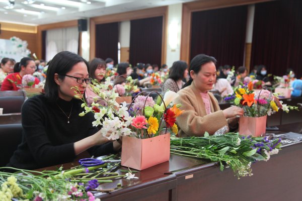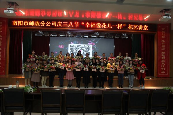 為慶?!叭恕眹H勞動?jì)D女節(jié),豐富女職工精神文化生活,展示南陽郵政女員工良好的精神風(fēng)貌,3月5日下午,南陽市郵政分公司舉辦了“幸福像花兒一樣”花藝講堂活動。活動邀請了花藝?yán)蠋煬F(xiàn)場授課,近百名女職工參與了活動。