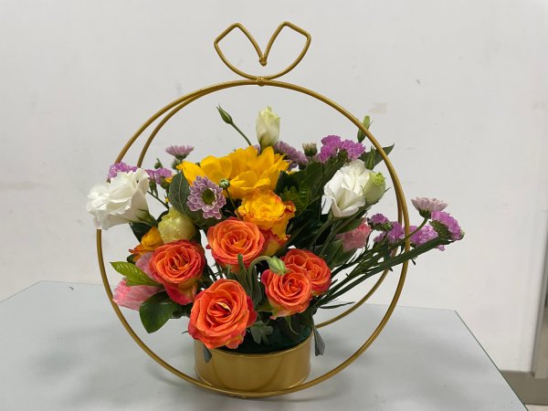 活動(dòng)伊始,資深花藝師熊老師,采用向日葵、黃玫瑰、粉色康乃馨、相思梅、白色桔梗、粉菊、勿忘我、梔子葉、尤加利等花材,講述了插花和繪畫、建筑、雕塑等等是相通的,插花中要注意黃金分割比例、色彩、主次關(guān)系、質(zhì)感、韻律、平衡……還有花的護(hù)理方法。講座最后,熊老師親自為大家演示了圓環(huán)花藝的制作全過程。在聽了熊老師專業(yè)細(xì)致的花藝講座后,女員工們深入了解了千姿百態(tài)的花草世界,聆聽了動(dòng)聽悅耳的花草語言。