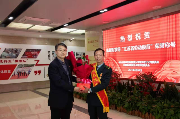 勞動(dòng)創(chuàng)造光榮,奮斗鑄就偉大。4月30日下午,江蘇省勞動(dòng)模范和先進(jìn)工作者表彰大會(huì)在南京隆重舉行,中國(guó)郵政集團(tuán)有限公司常州市分公司新區(qū)營(yíng)投部快遞員朱新財(cái)榮獲“江蘇省勞動(dòng)模范”稱號(hào)。當(dāng)天晚上,朱新財(cái)載譽(yù)歸來(lái),中國(guó)郵政常州市分公司副總經(jīng)理、工會(huì)主席張宏茂到市總工會(huì)迎接。