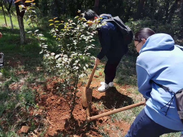 下午,青年職工們又來(lái)到昆明黑龍?zhí)豆珗@革命烈士陵園,站在烈士墓前,了解革命烈士生平先進(jìn)事跡,向烈士鞠躬致敬,獻(xiàn)上鮮花。隨后,在公園內(nèi)開(kāi)展“手植一棵樹(shù),綠化一片天”義務(wù)植樹(shù)活動(dòng)。青年職工們挖坑、栽樹(shù)、填土、澆水,細(xì)心種下小樹(shù)苗,用歡笑和汗水增添一抹靚麗新綠,看著自己的辛勤勞動(dòng)成果,大家臉上掛滿了收獲的喜悅。