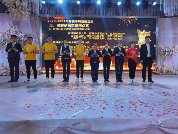 表彰會上分公司領(lǐng)導(dǎo)首先感謝為并為員工家屬送上鮮花,并對員工家屬多年的支持和付出表示感謝。員工家屬與會人員首先觀看了代理金融跨年度營銷活動及“金牛迎春”勞動競賽視頻;會議對代理金融2020-2021跨年度專項營銷活動獲獎單位和個人、2020年優(yōu)秀項目營銷單位以及2021年一季度特快專遞業(yè)務(wù)“金牛迎春”勞動競賽獲獎單位進(jìn)行了隆重表彰。隨著陣陣?yán)坐Q般的掌聲,分公司領(lǐng)導(dǎo)為獲獎單位、獲獎員工頒獎,愿在新的一年里,再立新功,再創(chuàng)佳績。
